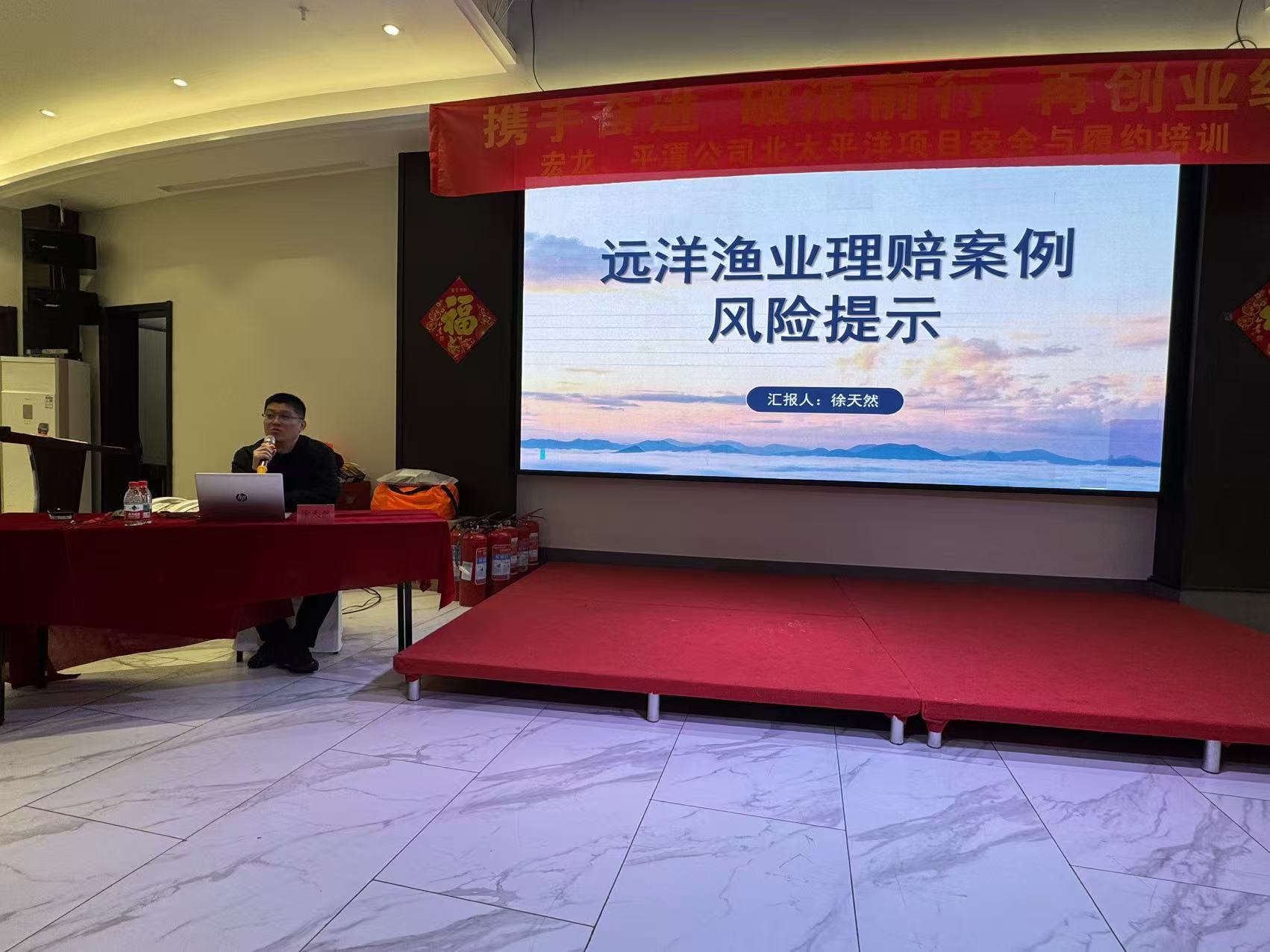 福建省渔业互保协会作为承办单位之一积极参与活动组织,会长叶建平、副会长马建华和秘书长陈志勇分别出席各场次活动开班仪式。在理论授课环节,中国渔业互助保险社福建分社运营总监徐天然结合近年来发生的远洋渔船典型安全生产事故案例,深入剖析了事故发生的常见成因,包括恶劣天气应对不当、设备维护缺失、人为操作失误等,并系统讲解了从风险识别、隐患排查到应急处置的全流程管理措施,重点强调了规范作业、持证上岗以及保险保障在事故处置与灾后恢复中的关键作用,为参训学员提供了兼具警示性与实操性的专业指导。