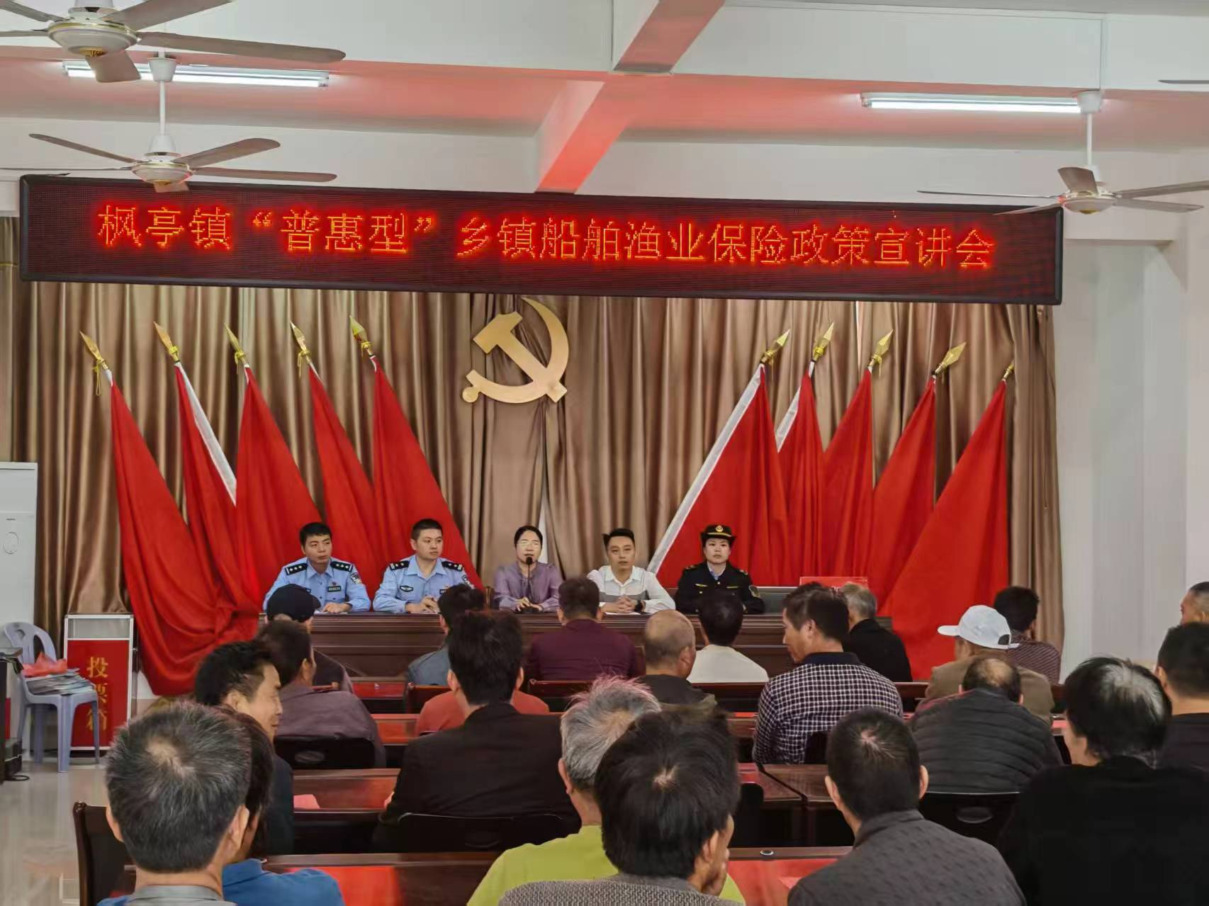 11月11日,莆田市办事处联合仙游县枫亭镇政府、镇公安派出所、海事部门等在枫亭镇召开“普惠型”乡镇船舶渔业保险政策宣讲会。