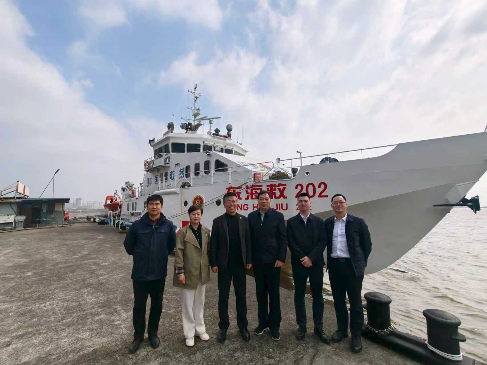 会后,协会人员参观基地现代化救援装备,基地技术人员介绍水下机器人、无人机、救生设备等高新救助装备性能特点与应用场景。随后,协会一行登上“东海救202”专业救助船,了解船舶性能、船员配置及日常训练情况。