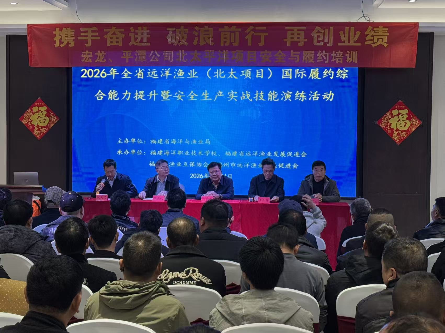 为深入贯彻农业农村部及省政府关于促进远洋渔业高质量发展的决策部署,切实提升我省远洋渔业从业人员国际履约能力与安全生产技能,近期,由福建省海洋与渔业局主办,福建海洋职业技术学校、泉州市海洋与渔业局、福建省远洋渔业发展促进会、福建省渔业互保协会、福州市远洋渔业发展促进会共同承办的“2026年全省远洋渔业(北太项目)国际履约综合能力提升暨安全生产实战技能演练活动”分别在浙江温岭、山东荣成和泉州晋江成功举办。活动覆盖我省主要远洋渔业基地,累计培训远洋渔业企业安全生产负责人、管理人员及船长、轮机长等职务船员1039人次。
