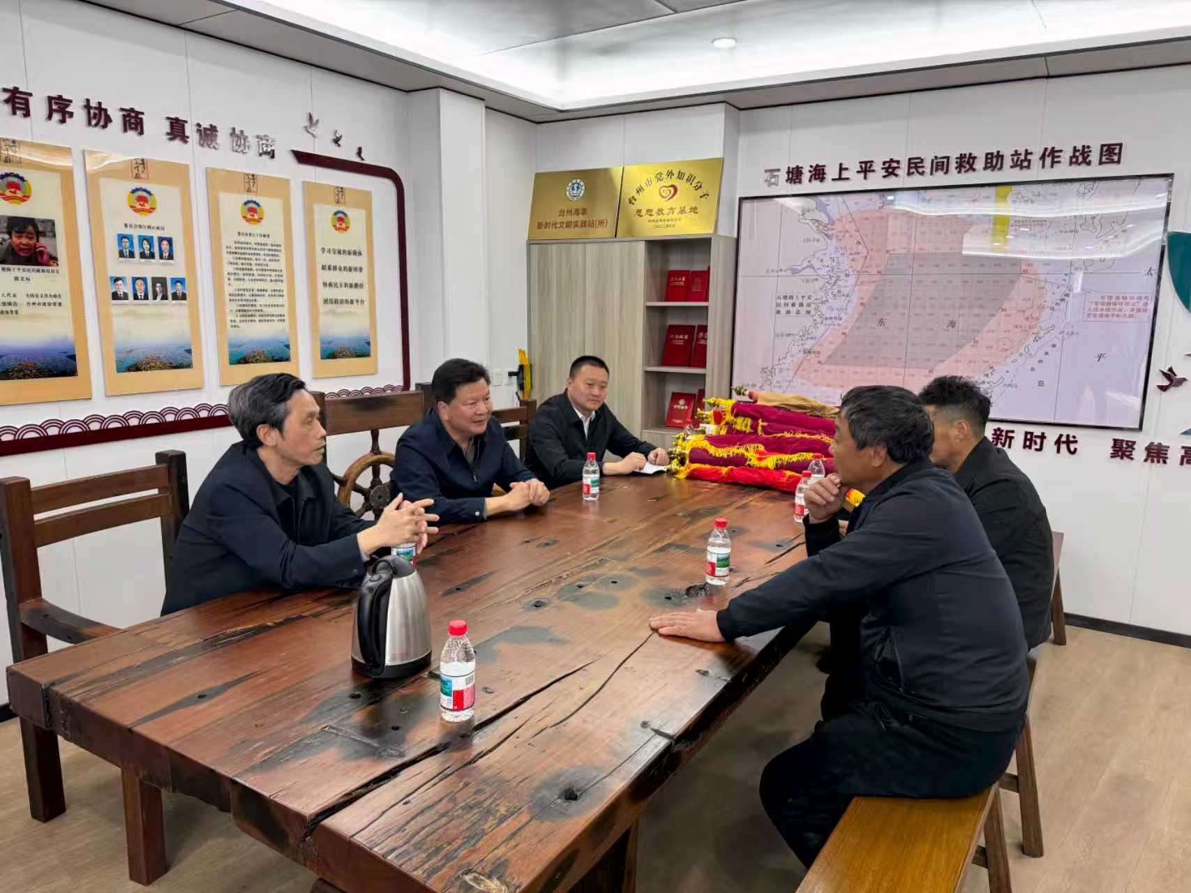 近日,福建省渔业互保协会会长叶建平带队赴浙江省温岭市石塘镇海上平安民间救助站调研学习,与“全国见义勇为模范”郭文标同志围绕海上救助发展方向与渔业安全保障合作开展深入交流。